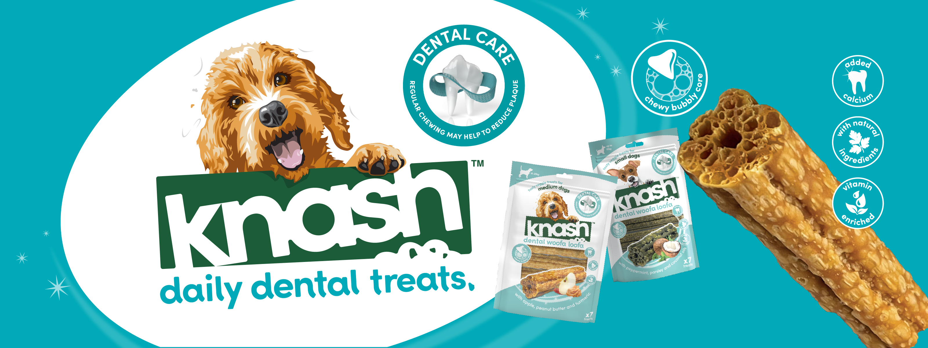 Knash treats have bobbly bits or a bubbly core that can help in the removal of plaque from your dogs teeth. Daily dental chews can lead to cleaner teeth and fresher breath. Oh and dogs love them too!